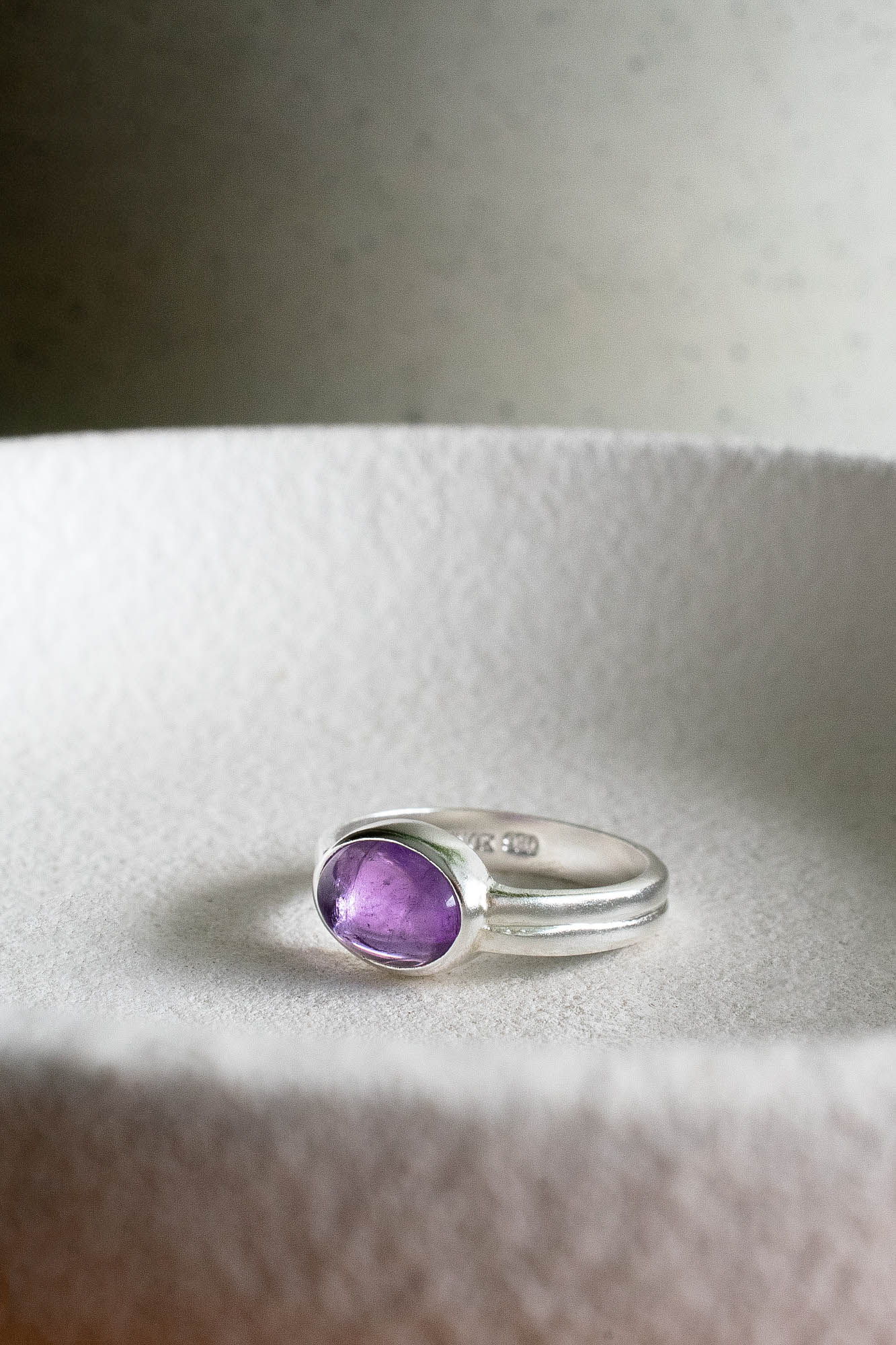 El anillo Cyd combina la pureza de la plata con la energía mística de la amatista ovalada, creando una pieza que irradia calma y equilibrio. Su brillo violeta inspira introspección, serenidad y conexión con la sabiduría interior.