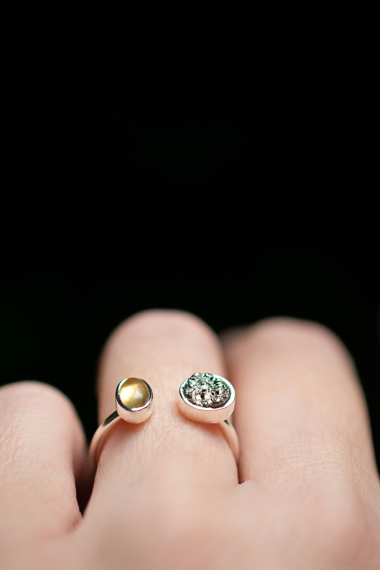 Nuestro anillo Joia es el equilibrio perfecto entre elegancia y energía positiva. Diseñado en delicada plata, combina dos poderosas piedras: la pirita, en su forma natural, y el citrino, con su cálido tono dorado que irradia luz y optimismo. Cada detalle ha sido cuidadosamente pensado para que esta joya te haga lucir aún más bella y además eleve tu vibración diaria.