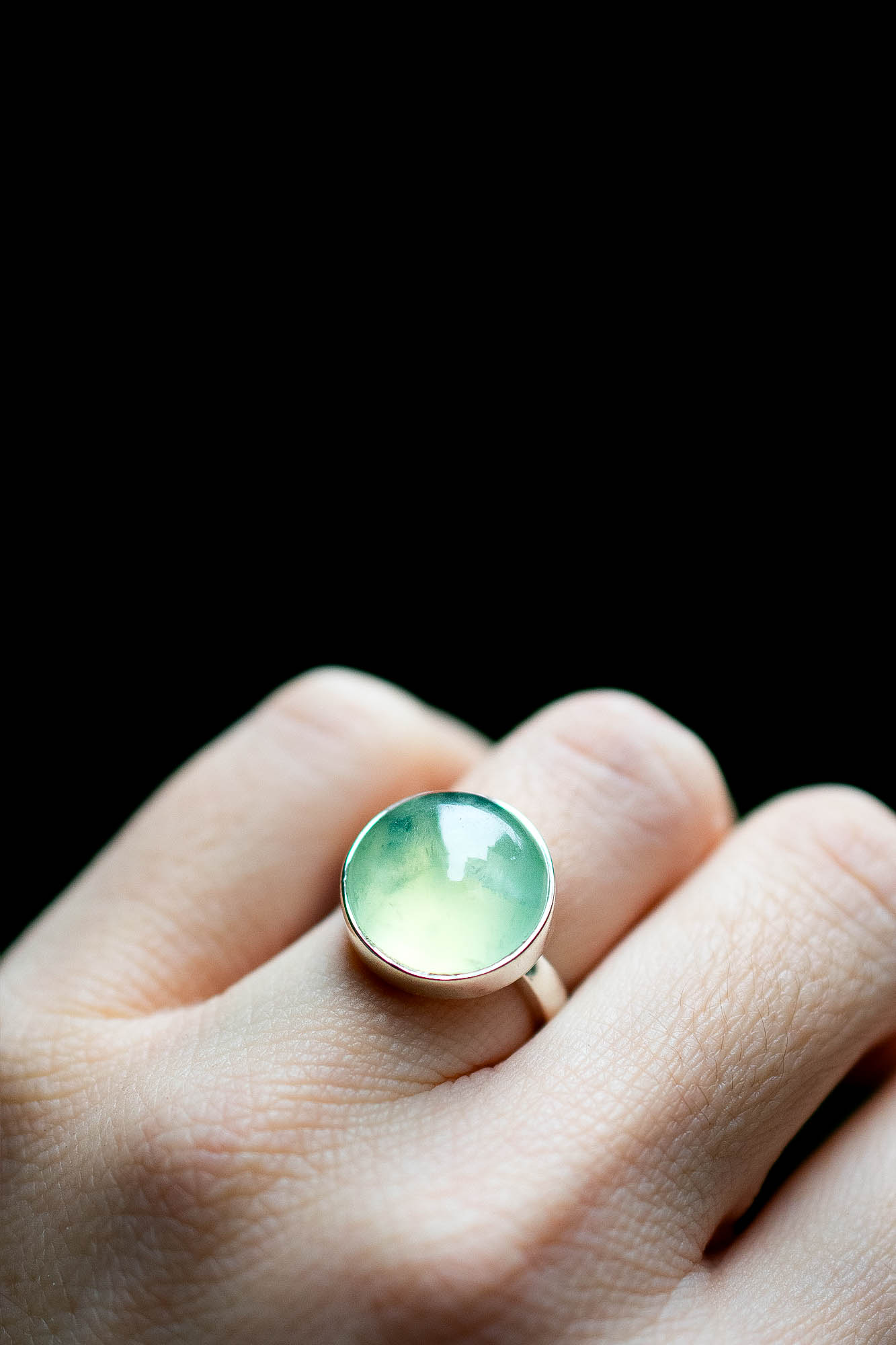Anillo Kanon Prehnita, una joya que transmite serenidad, protección y crecimiento interior. La Prehnita, con su suave tono verde, equilibra los chakras del corazón y plexo solar, calmando la ansiedad y renovando la energía vital. Actúa como un escudo protector que te envuelve frente a vibraciones negativas, ideal para meditar o mantener calma en el día a día. También potencia la intuición y la precognición, ayudándote a estar más presente y preparado.