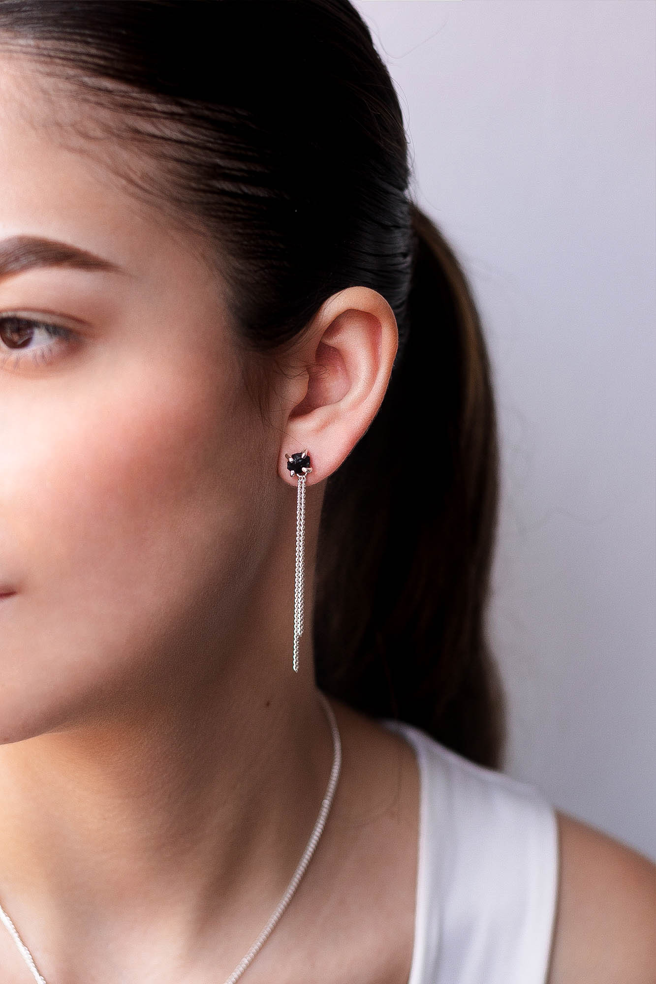 Los aretes Drop Turmalina combinan la fuerza orgánica de la turmalina en su estado natural con la delicadeza del movimiento. Dos finas cadenas de plata descienden con elegancia, evocando la fluidez de la energía y el equilibrio entre lo terrenal y lo etéreo.