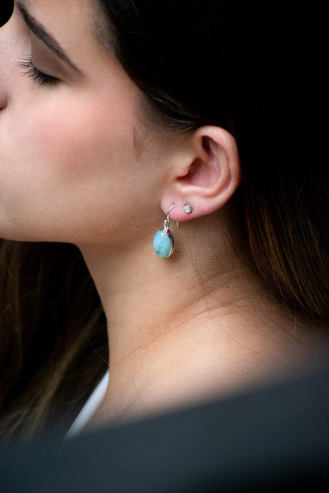 El diseño colgante permite que la piedra capture la luz y revele sus variaciones únicas, haciendo que cada par sea especial e irrepetible.