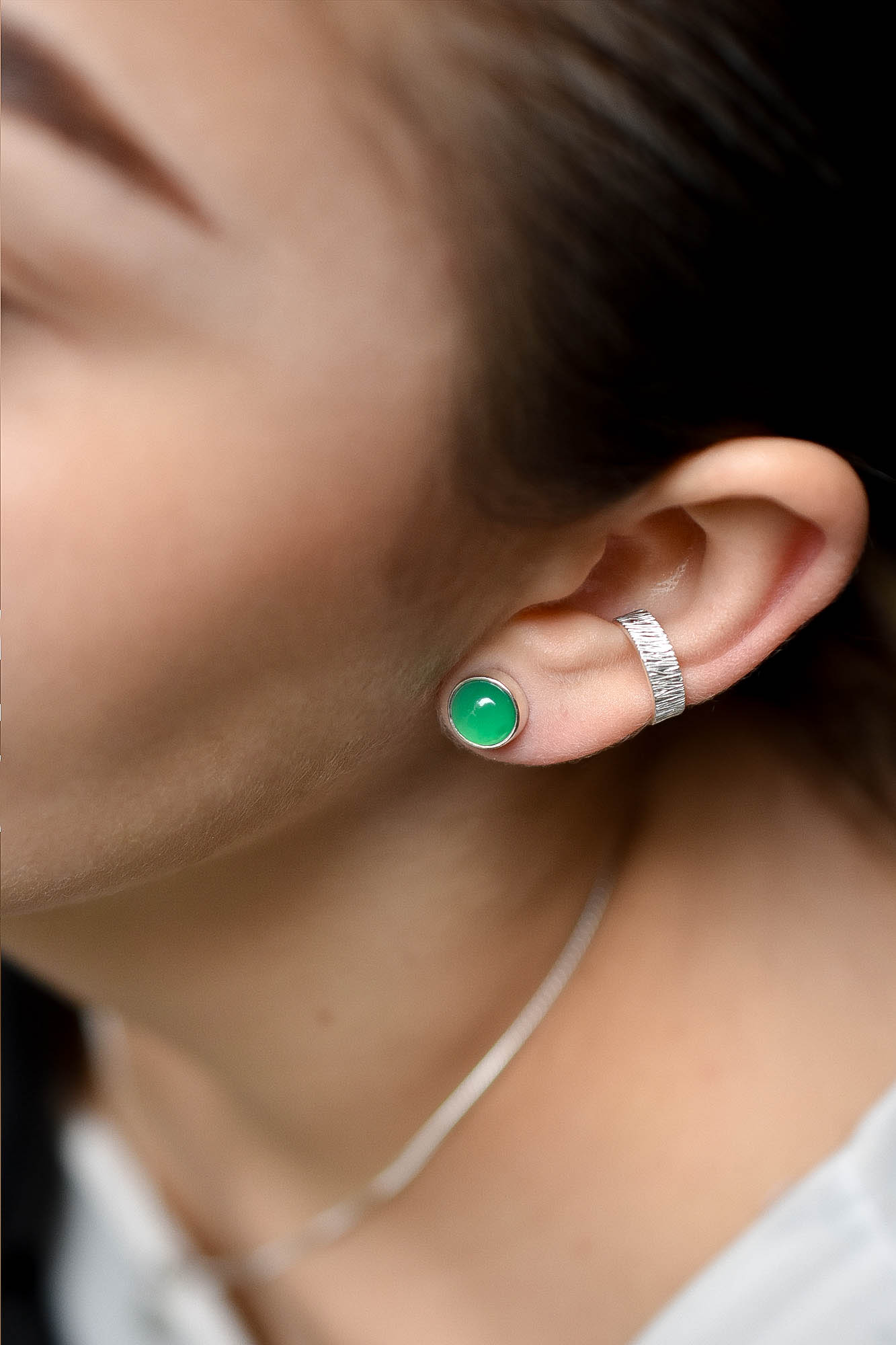 *En la foto la modelo está usando también los aretes ónix verde circular. Ambas joyas se venden por separado.*