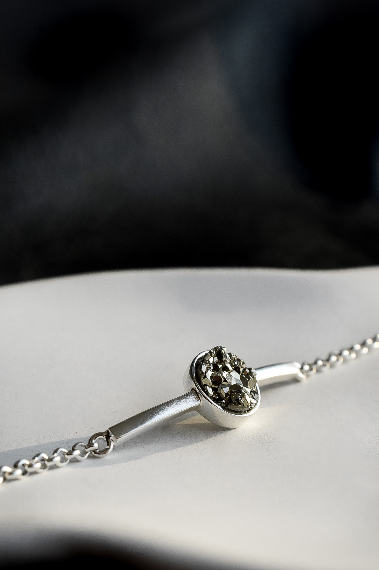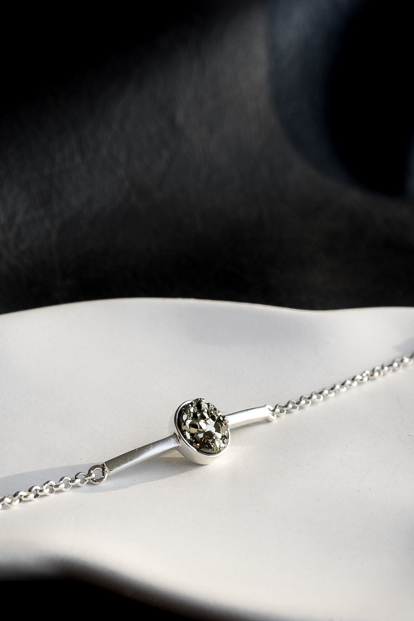 Nuestra pulsera Gala es el regalo perfecto. Su diseño minimalista y sobrio la hacen una de nuestras favoritas. La pulsera Gala es elaborada a mano por maestros joyeros peruanos en plata 950 y pirita.