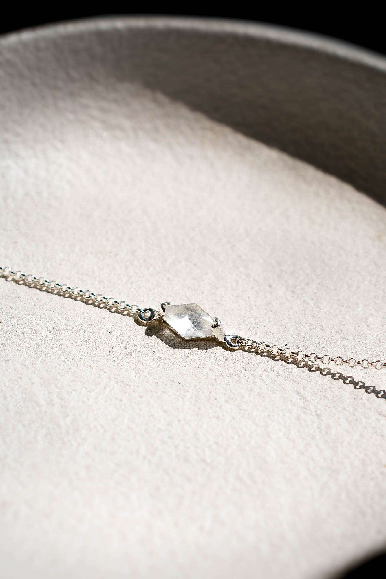 Nuesta pulsera Yael es una pulsera de plata que simboliza la luz interior y la claridad del camino. En el centro lleva un cuarzo cristal en forma de rombo, una figura asociada al equilibrio, la armonía y la expansión de la energía.